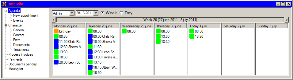 Agenda week overview.