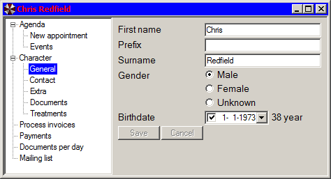 Inputscreen for general information.