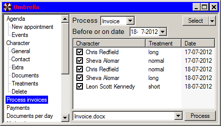 Process invoices screen.