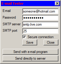 E-mail testprogram, correctly set up to be used with Hotmail.